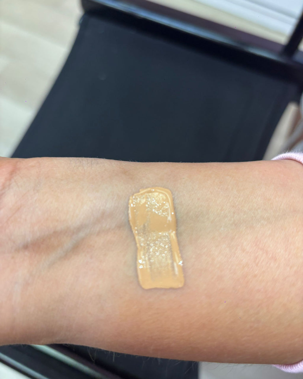 This foundation is heavily enriched with Aloe Vera a hydrated appearance. Blends easy and goes on smooth.