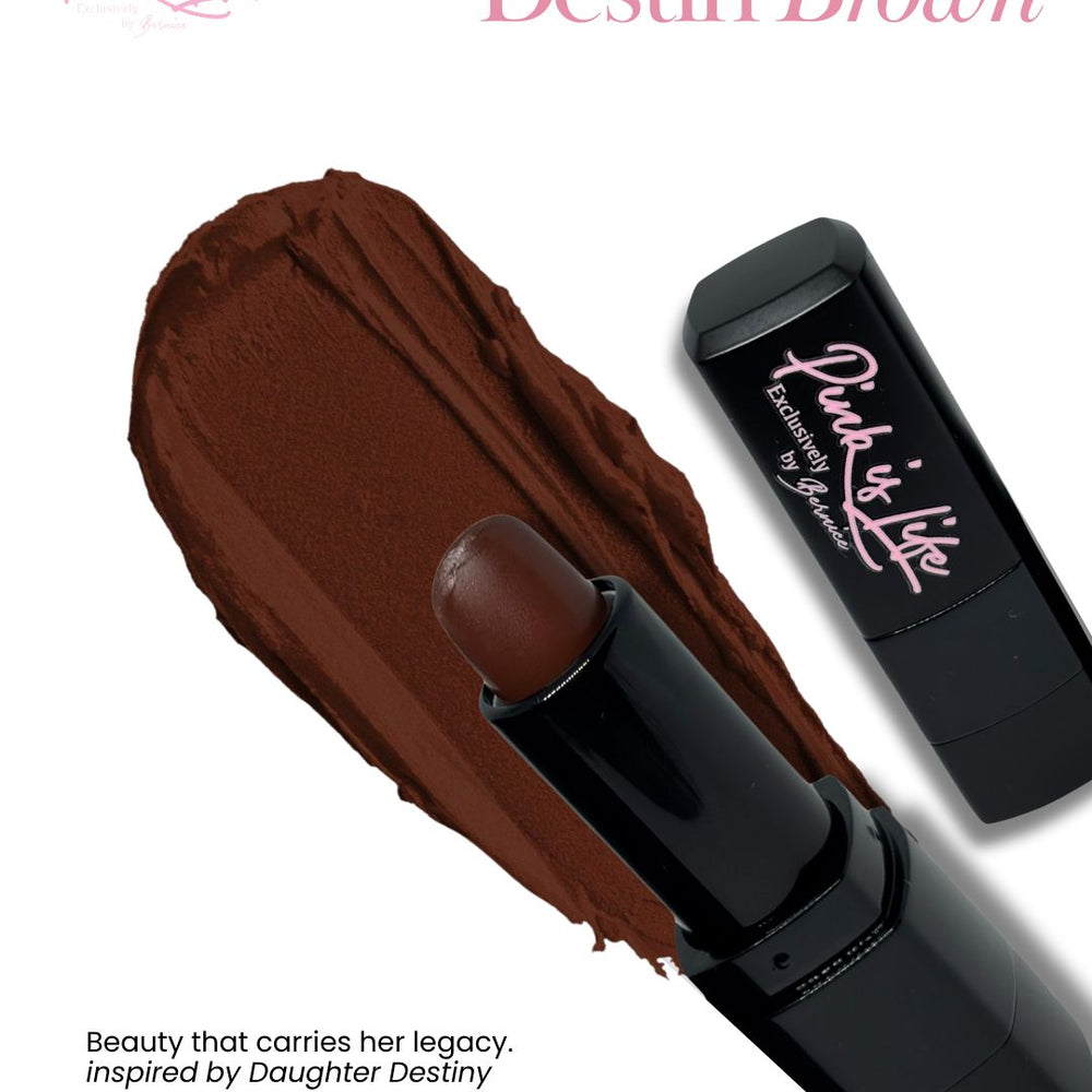 Experience timeless beauty with Soft Brown, a luxurious deep brown lipstick that celebrates strength, confidence, and legacy. Inspired by Daughter Destiny, this rich, chocolate-toned shade complements all skin tones and adds a bold touch of elegance to every look.